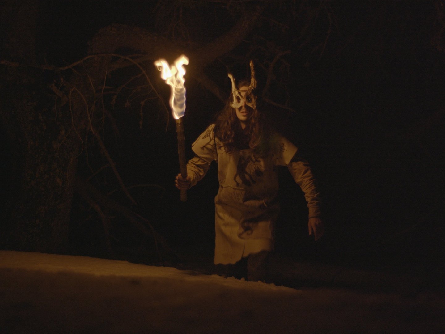 Masque fait d’un fémur et d’un morceau de bois flotté.