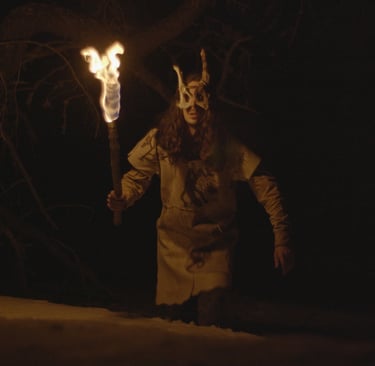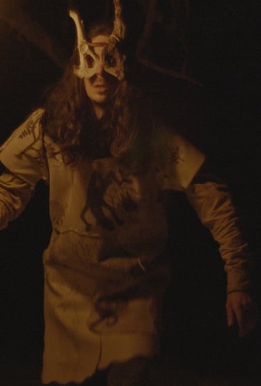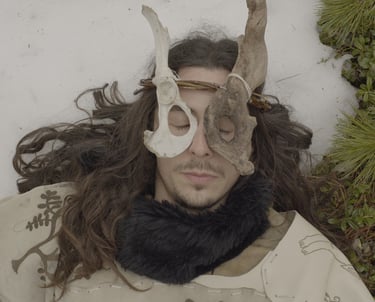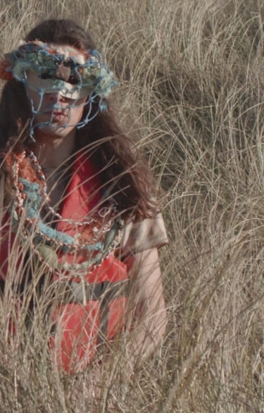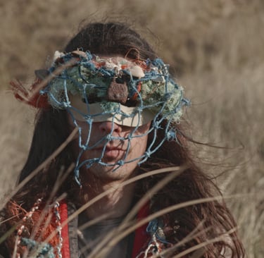 Ces costumes et masques ont été réalisés pour le projet audiovisuel et l’installation de l’artiste Toudou/Lou Morlier. J’ai eu recours à des savoirs faire artisanaux comme la broderie, la teinture végétale, la vannerie, le tissage,...). Ils ont été fabriqués à partir de matériaux glanés et recyclés au fil des marches.