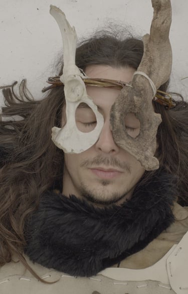 Masque fait d’un fémur et d’un morceau de bois flotté.