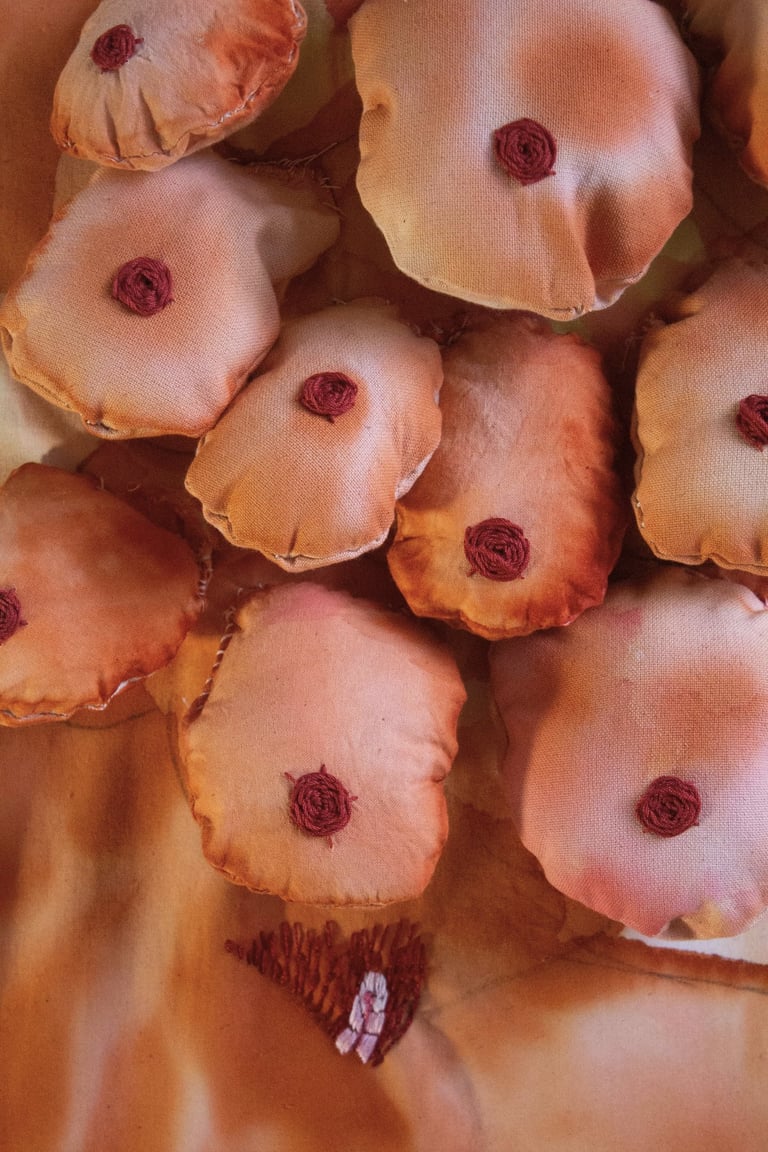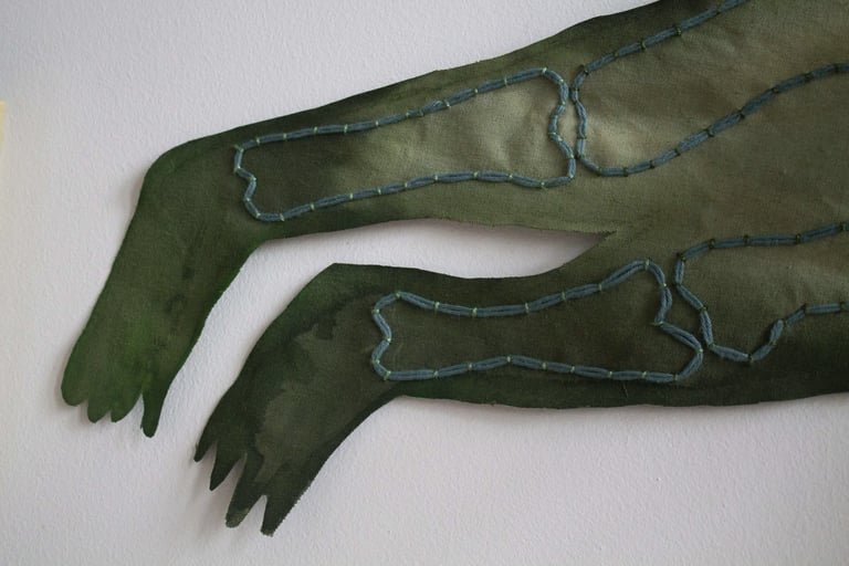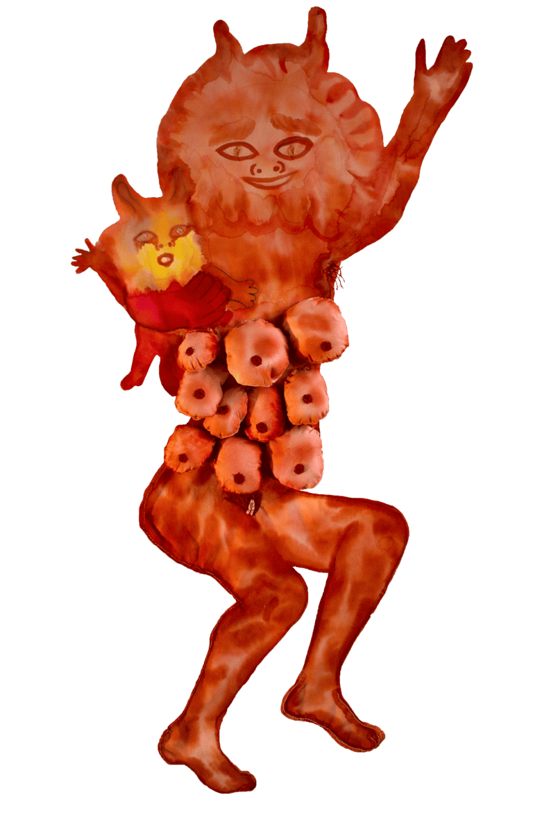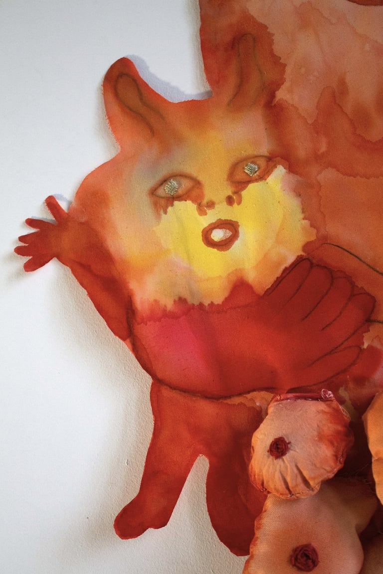 Mama pleine de sève, encre sur coton, fil à broder, ouate, 142x73cm, 2023