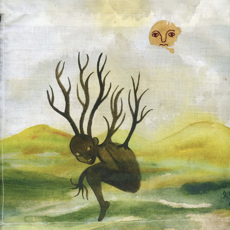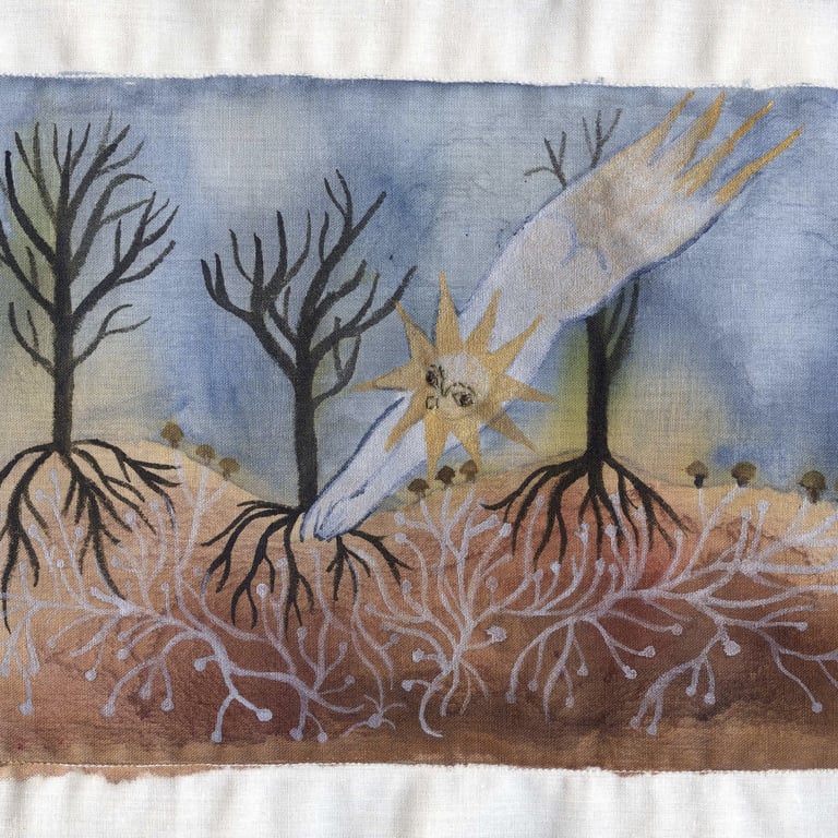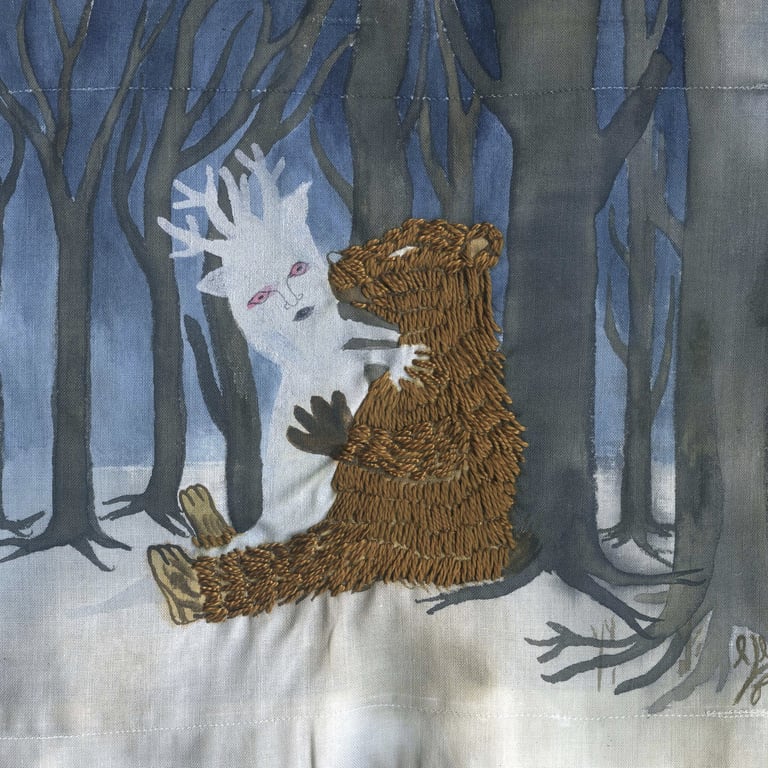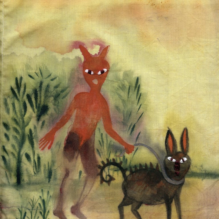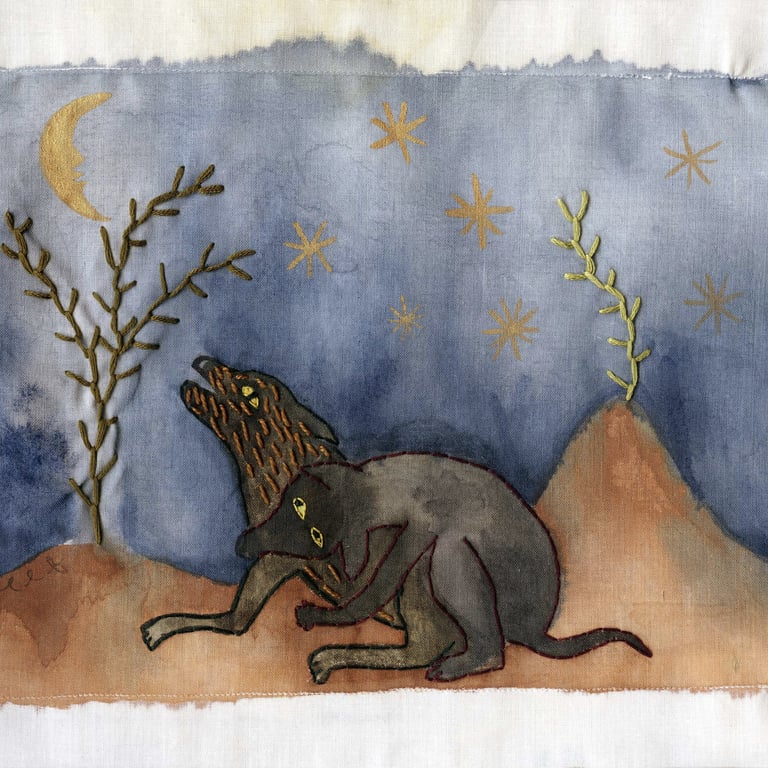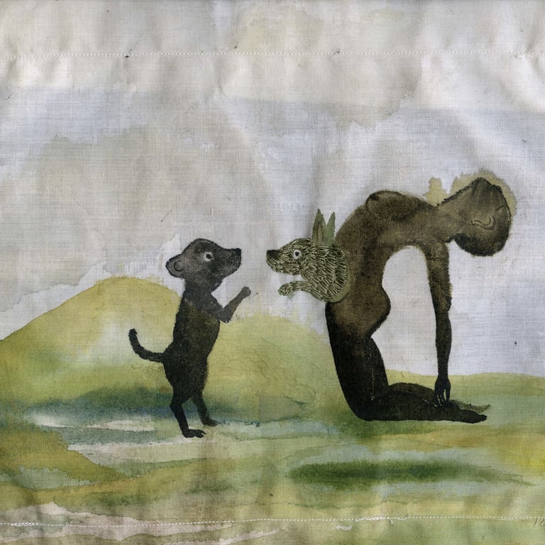 Série Les chimères amoureuses, encre sur coton et broderie, 28x25 cm, 2023